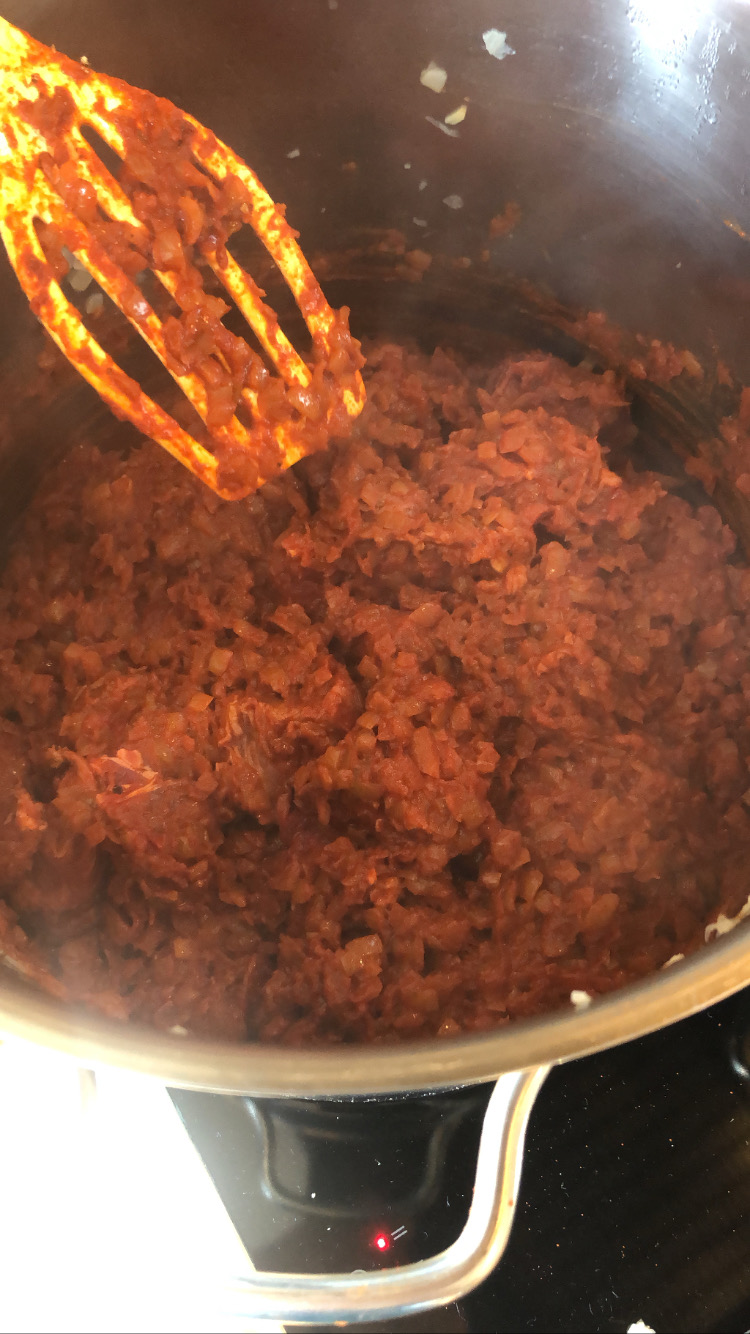 Gut Ding braucht Weile. Genauso verhält es sich mit dem guten, intensiven Geschmack. Der simple, aber so wirkungsvolle Trick bei einem Gulasch ist das lange Anschwitzen der Zwiebeln. Gut, dass ich meinen lieben Papa (aka bester Küchenchef) zur Seite hatte, der kräftig mithalf, die Zwiebeln in Bewegung zu halten.