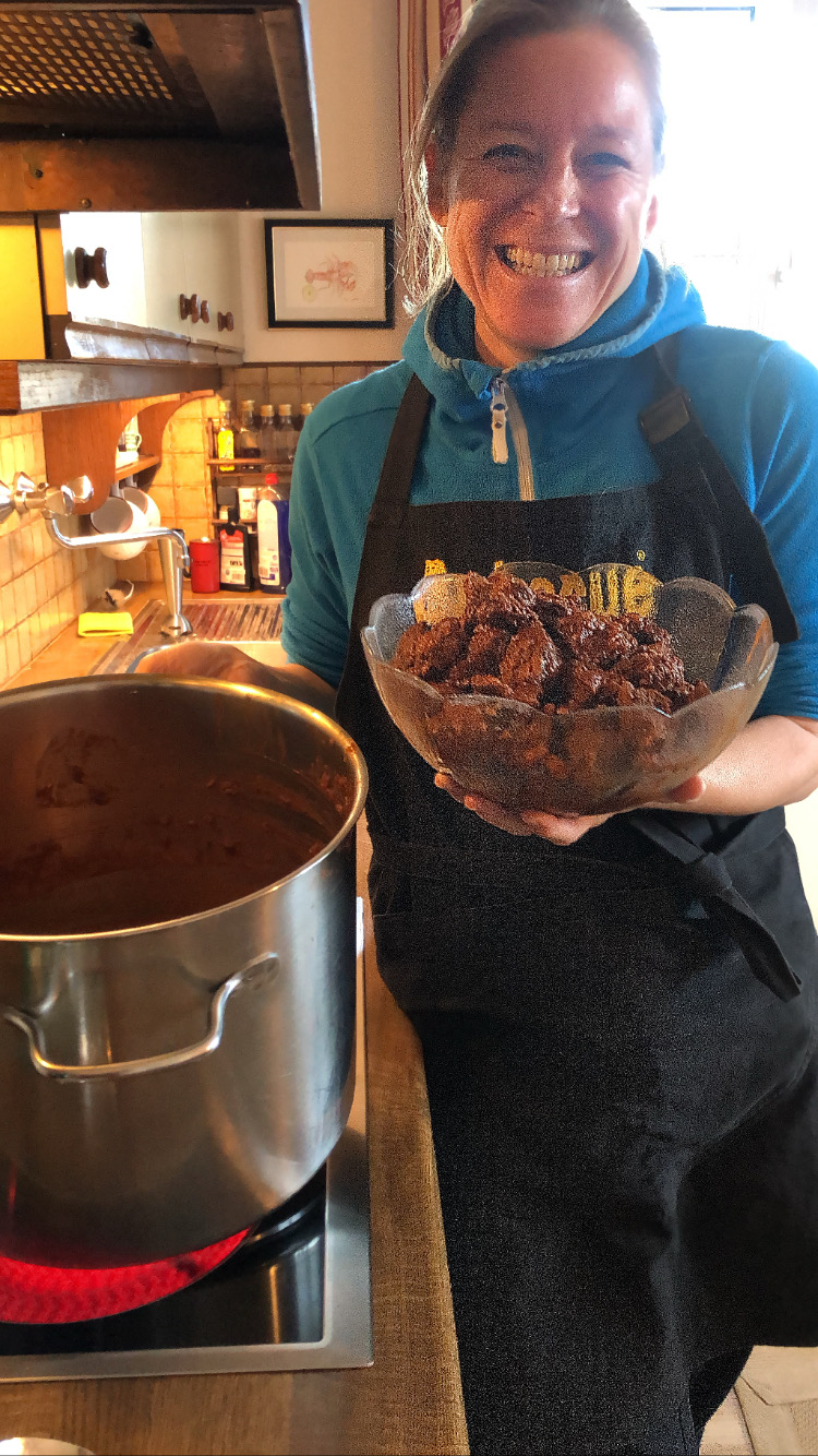 Inspirieren ließen wir uns vom Sacher Kochbuch und gaben dem Gulasch dann noch unseren eigenen Twist. Das Gericht könnt ihr perfekt vorbereiten, einwecken oder portionsweise einfrieren. Und weil es so selten selbst gekocht wird, kommen alle gerne, um es zu verkosten.