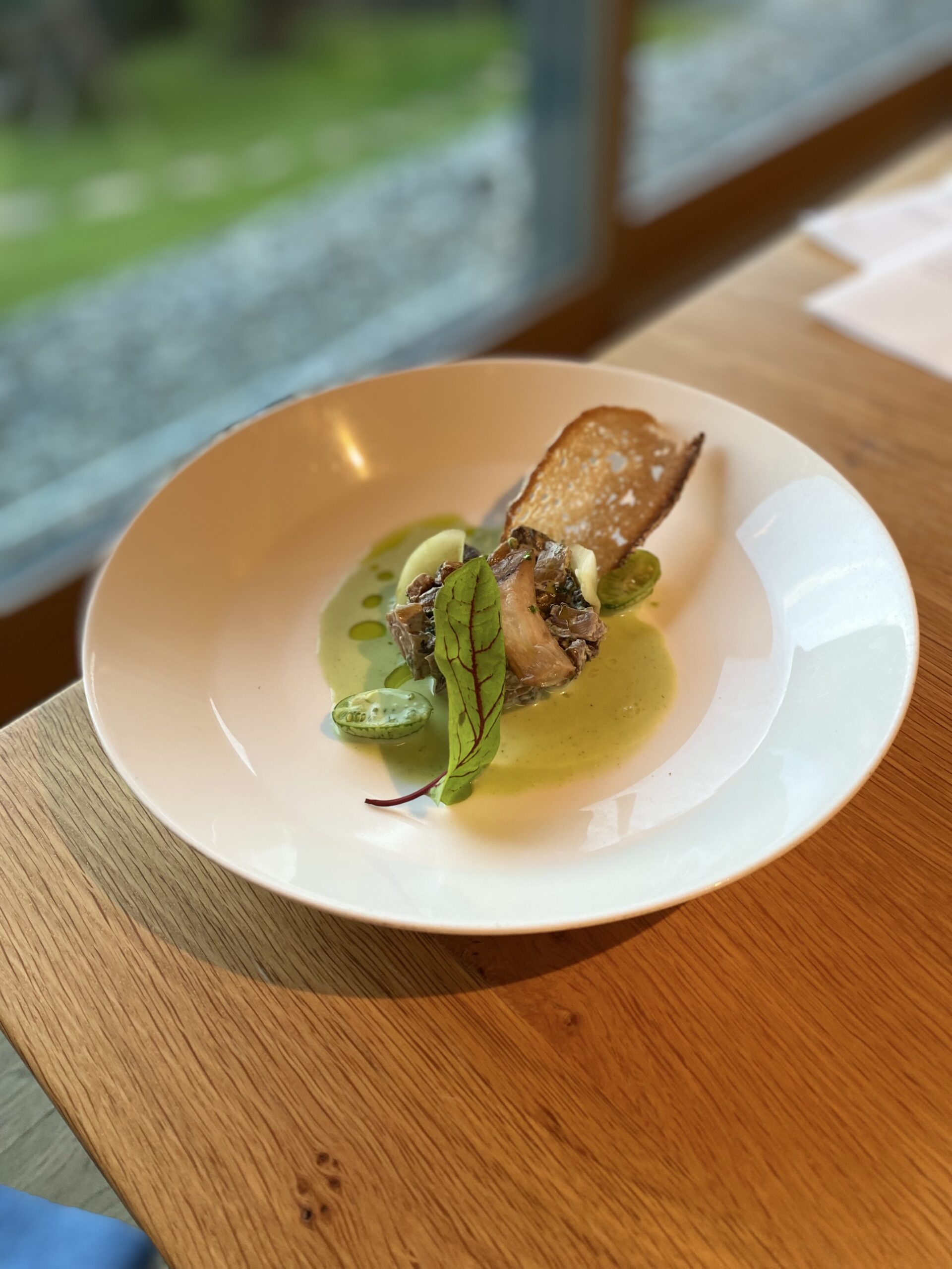 Der Abend erfüllt meine Hoffnung, eine atemberaubende Symphonie der Geschmäcker ab dem ersten Gang. Jeder weitere steigert sich und gibt ein Feuerwerk an Geschmacksexplosionen frei. Manche Gänge, wie die geschmorten Sehnen, sind für die Mutigen unter uns, offenbaren zugleich die pure Schönheit der Region. Wir sind verzaubert, erleben einen Service, der eine Kombination aus aufmerksamer Präsenz und fühl-dich-wie-zuhause schafft.